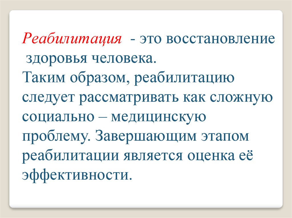 реабилитации является оценка её
