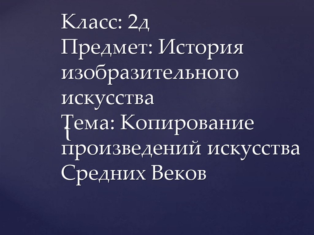 1. Класс: 2д Предмет: История изобразительного искусства Тема: Копирование произведений искусства Средних Веков