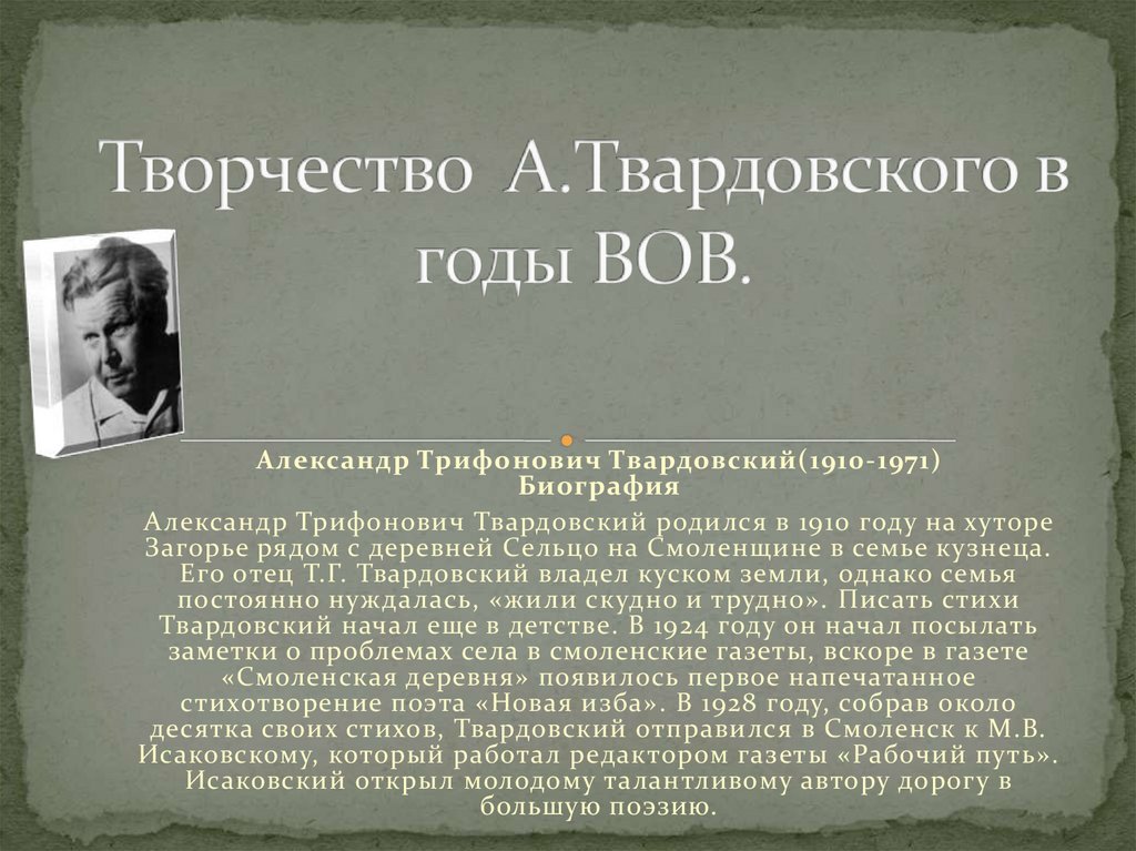 1. ТВОРЧЕСТВО А.Т.ТВАРДОВСКОГО В ГОДЫ ВЕЛИКОЙ ОТЕЧЕСТВЕННОЙ ВОЙНЫ