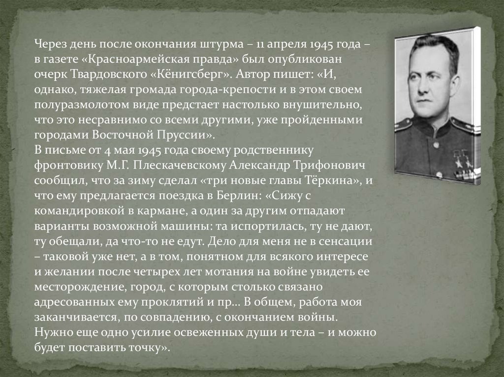 очерк Твардовского «Кёнигсберг». Автор пишет: «И,