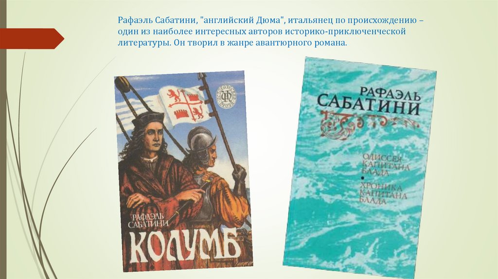 Рафаэль Сабатини, "английский Дюма", итальянец по происхождению –один из наиболее интересных авторов историко-приключенческой