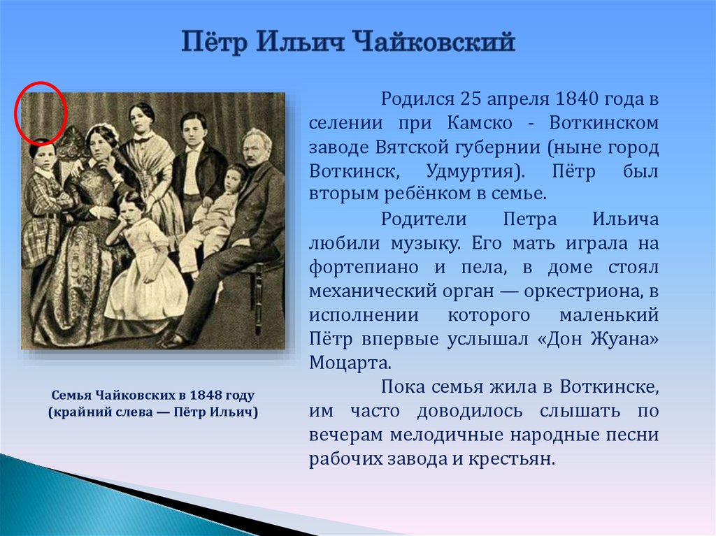 Понятливость и впечатлительностьотличали маленького Чайковского, который