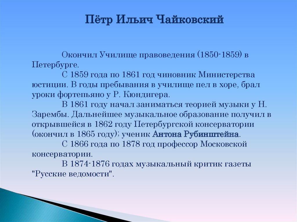 (окончил в 1865 году); ученик Антона Рубинштейна.