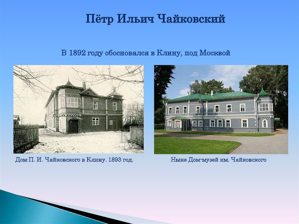 В 1892 году обосновался в Клину, под МосквойДом П. И. Чайковского в Клину. 1893 год.