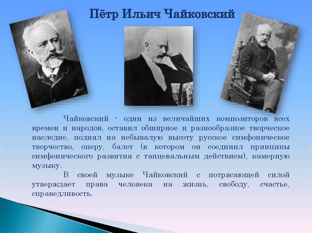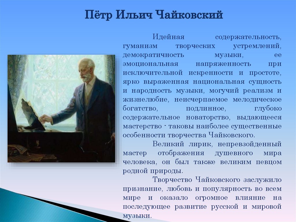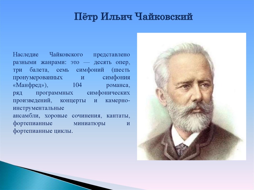 Чайковский - один из величайших композиторов всехвремен и народов, оставил обширное и разнообразное творческое
