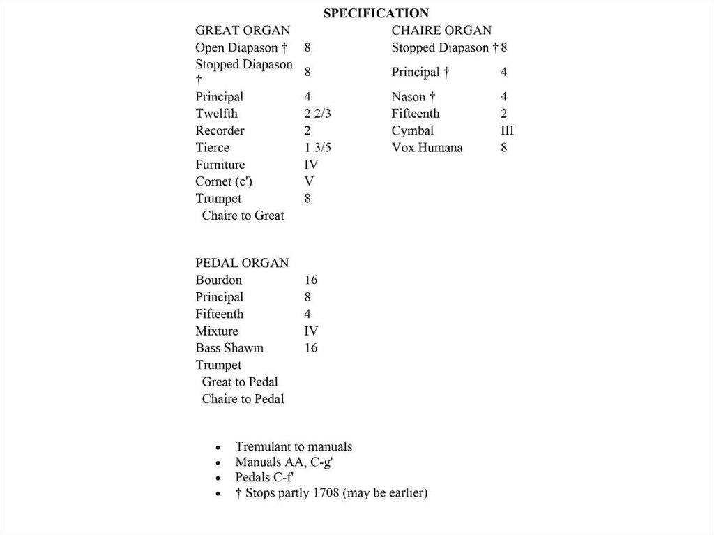 Диапазон – около 4 октавКоличество мануалов – от 1 до 5