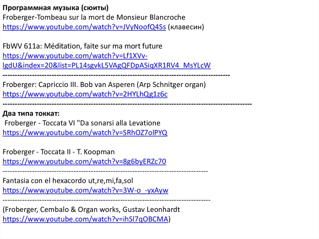 Программная музыка (сюиты)Froberger-Tombeau sur la mort de Monsieur Blancroche