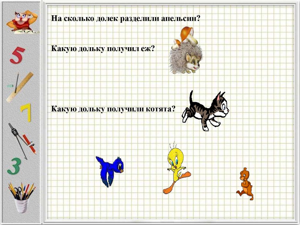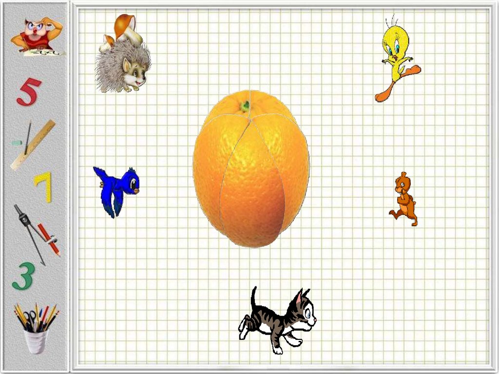 На сколько долек разделили апельсин?Какую дольку получил еж?