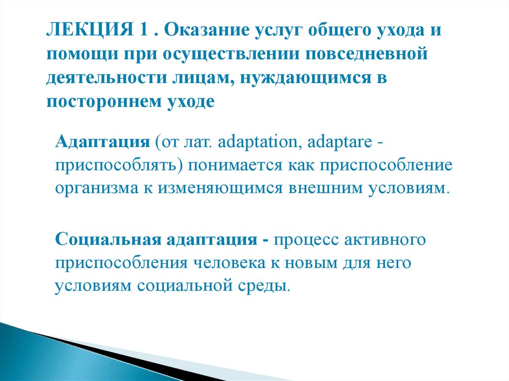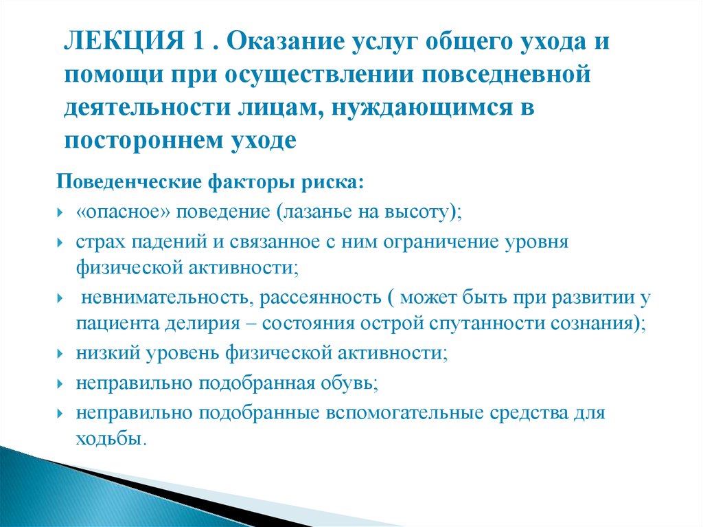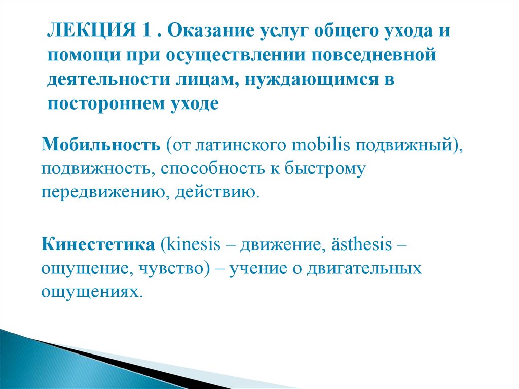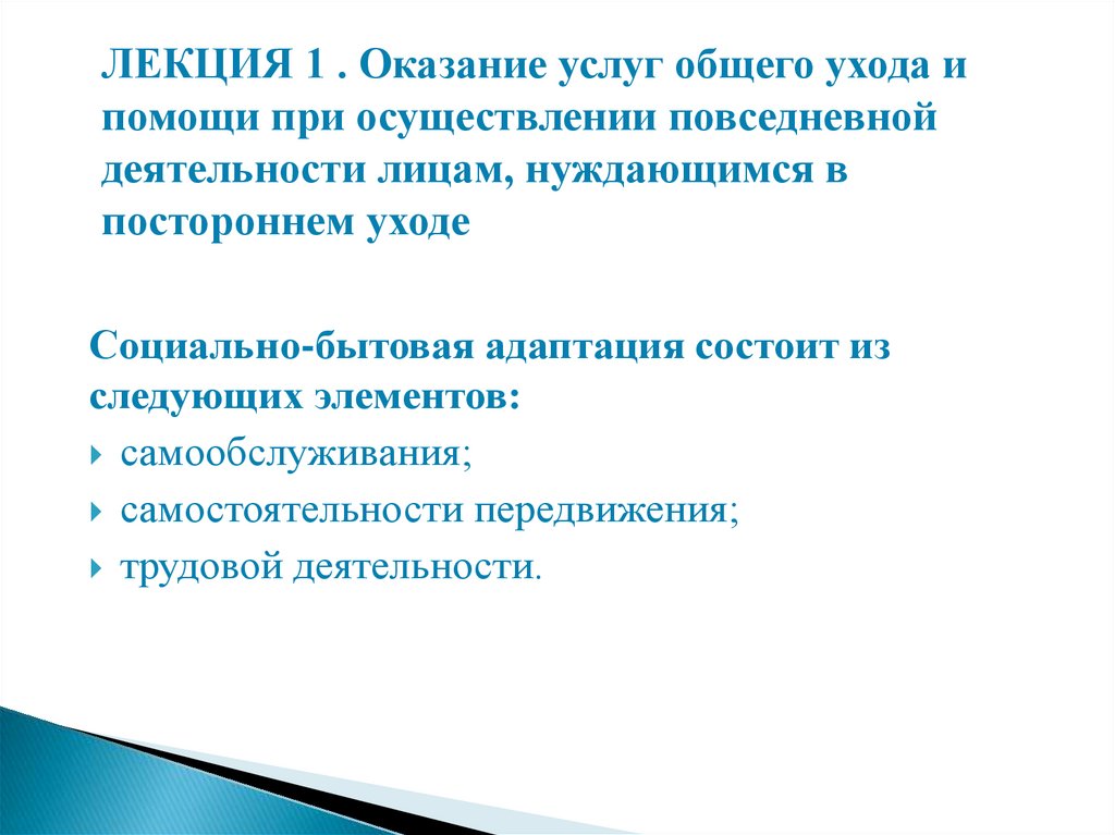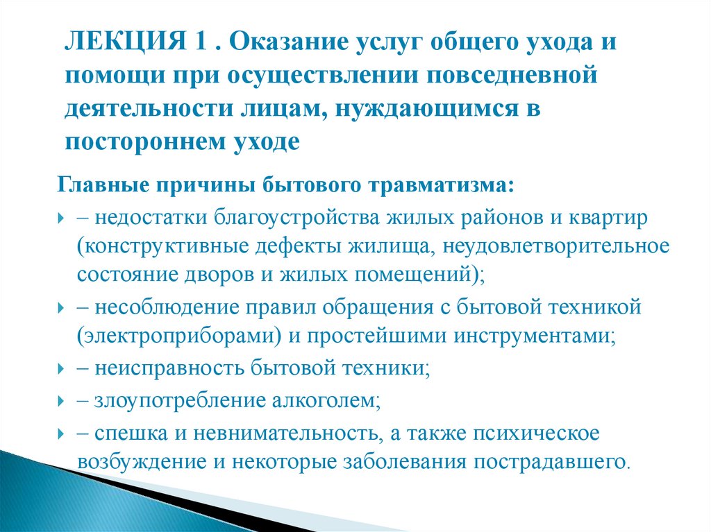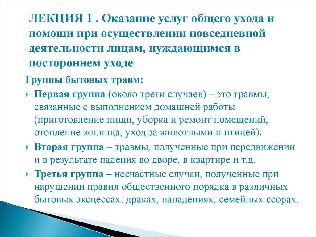ЛЕКЦИЯ 1 . Оказание услуг общего ухода ипомощи при осуществлении повседневной