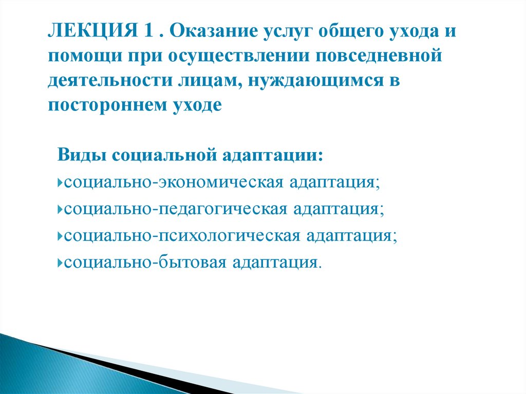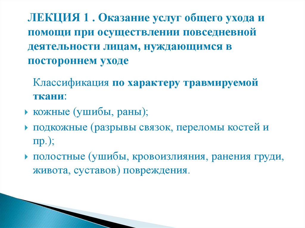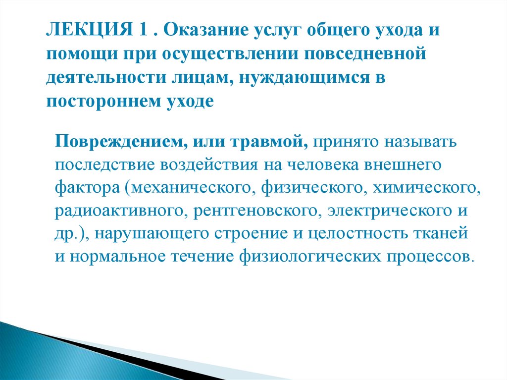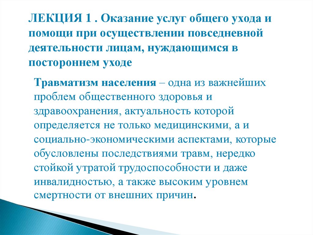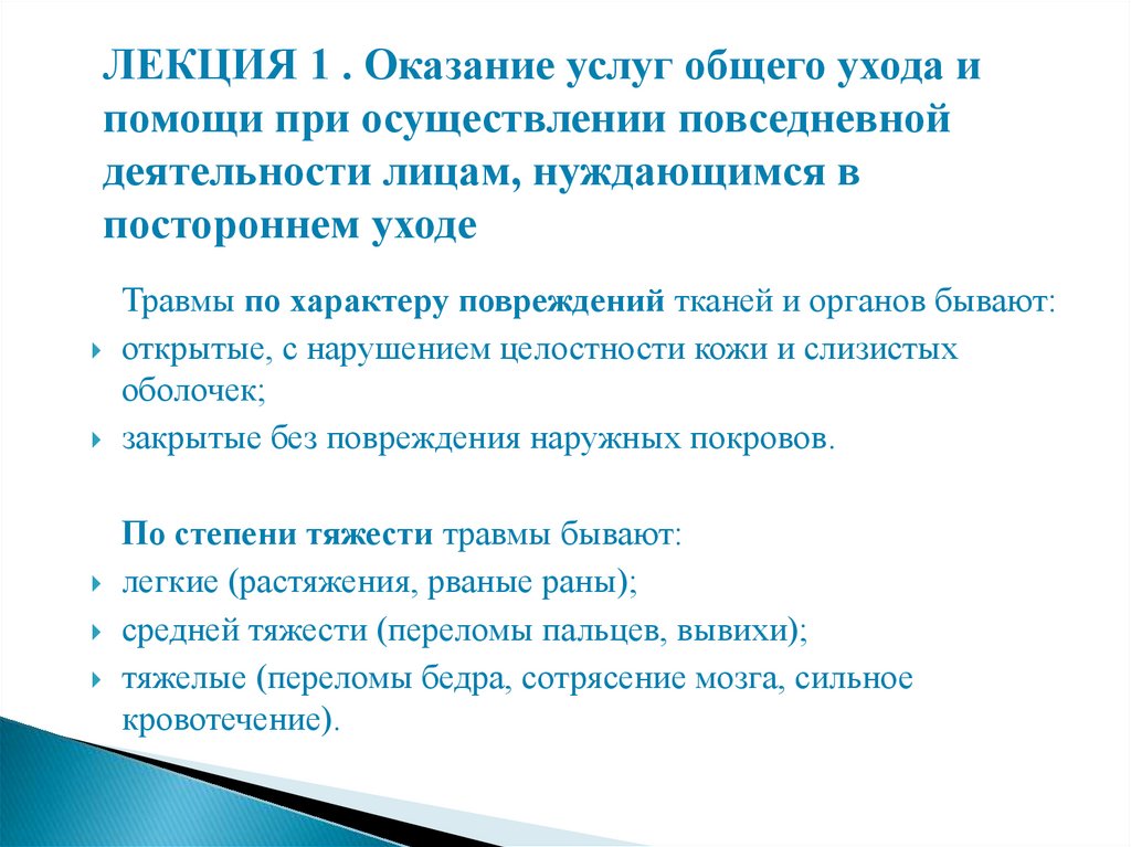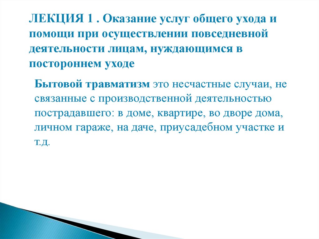 ЛЕКЦИЯ 1 . Оказание услуг общего ухода ипомощи при осуществлении повседневной