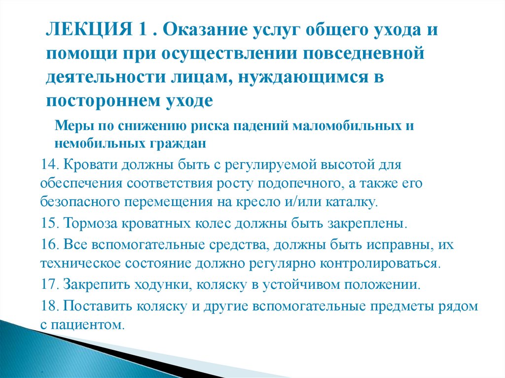 Оказание услуг общего ухода и помощи при осуществлении повседневной деятельности. Лекция 1