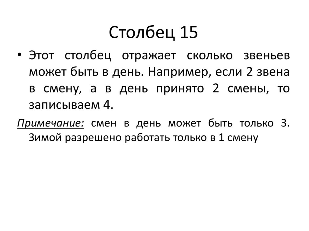 Столбец 15• Этот столбец отражает сколько звеньев