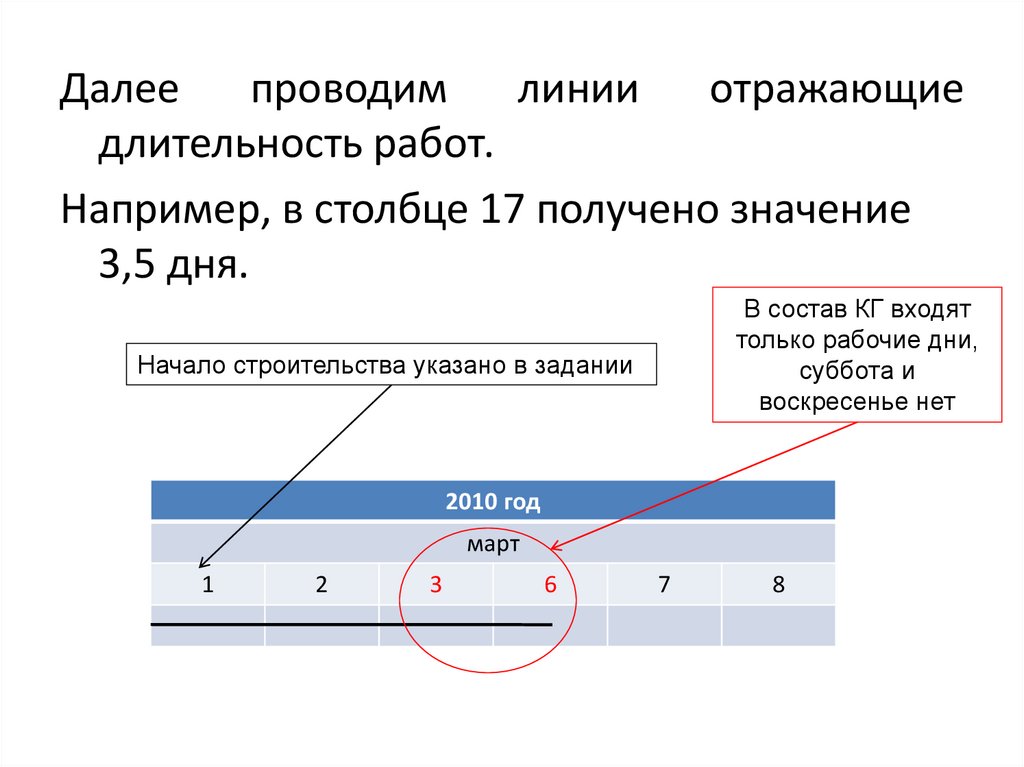длительность работ.