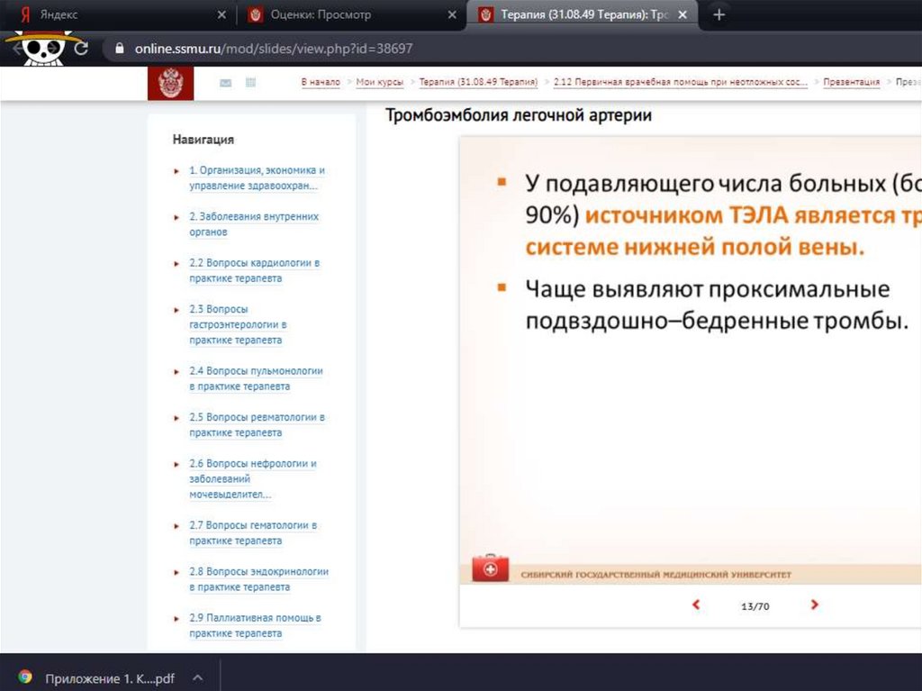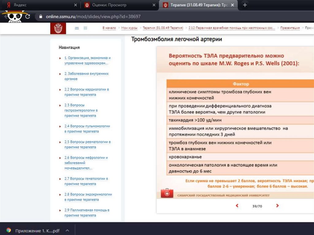 Тромбоэмболия лёгочной артерии - тэла