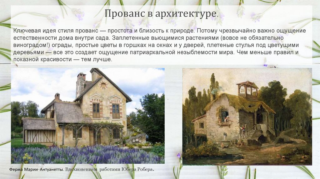 Прованс в архитектуре.Ключевая идея стиля прованс — простота и близость к природе. Потому чрезвычайно важно ощущение