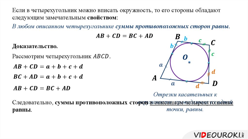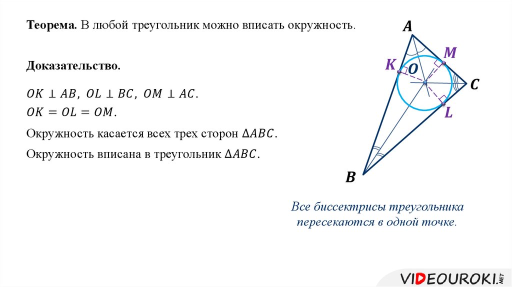 Описанная окружность. Треугольник, вписанный в окружность. Касательная к окружности. Окружность, вписанная в треугольник