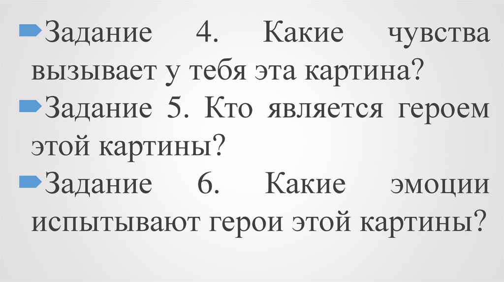 Задание 4. Какие чувствавызывает у тебя эта картина?