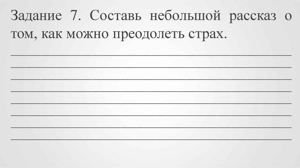 Задание 7. Составь небольшой рассказ отом, как можно преодолеть страх.