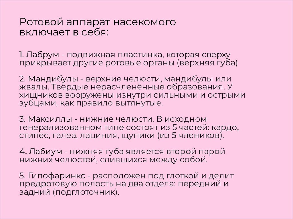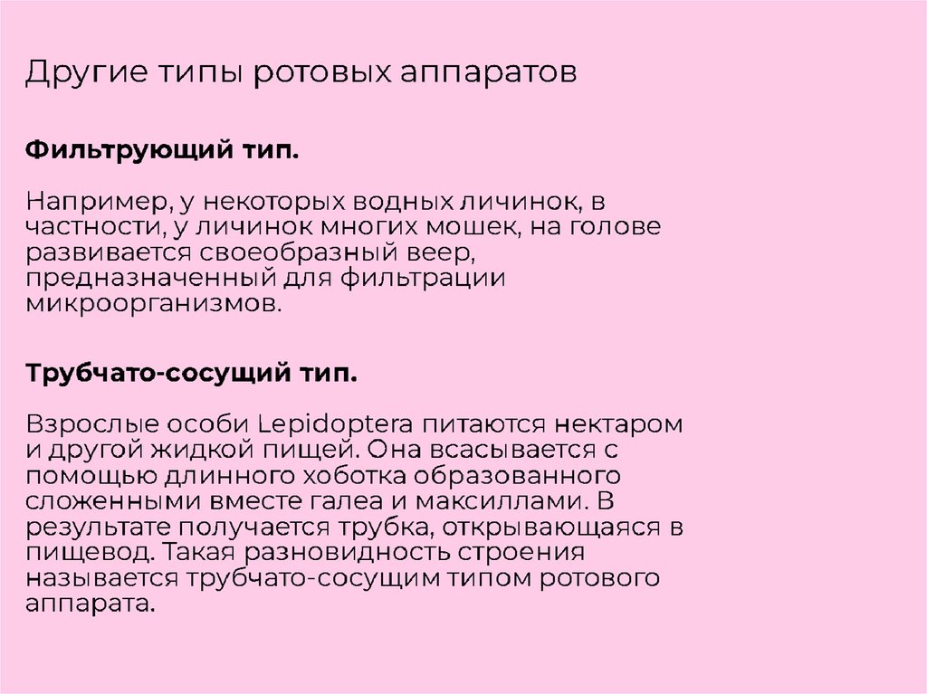 Тип ротового аппарата насекомых и типы развития насекомых