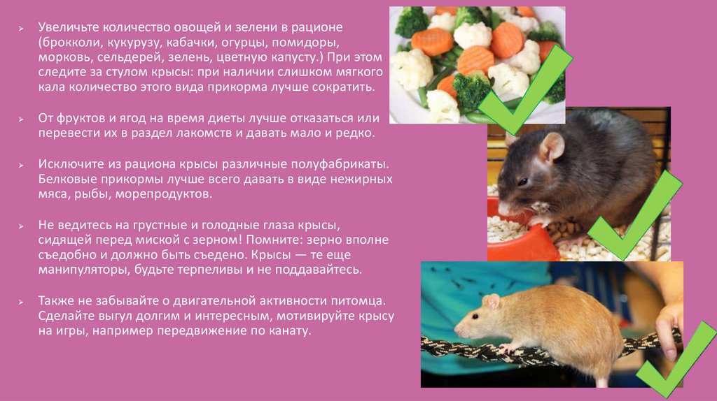 Пища должна быть разнообразной. Если вы решили кормить крысу