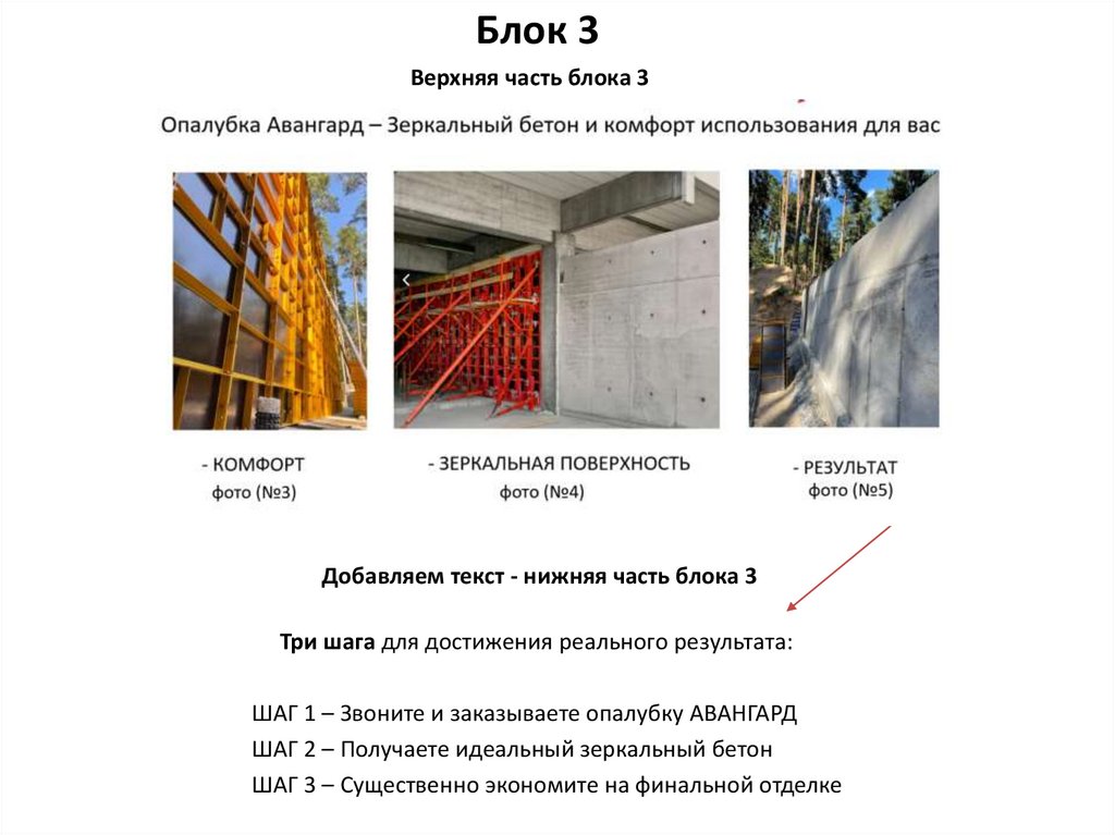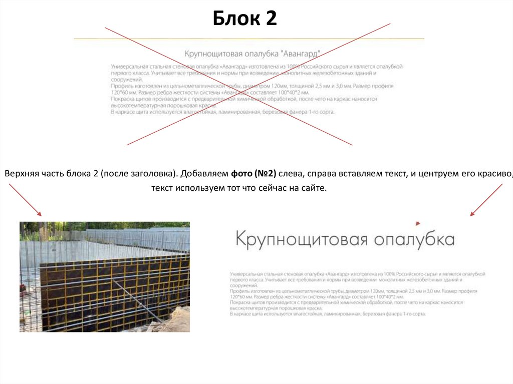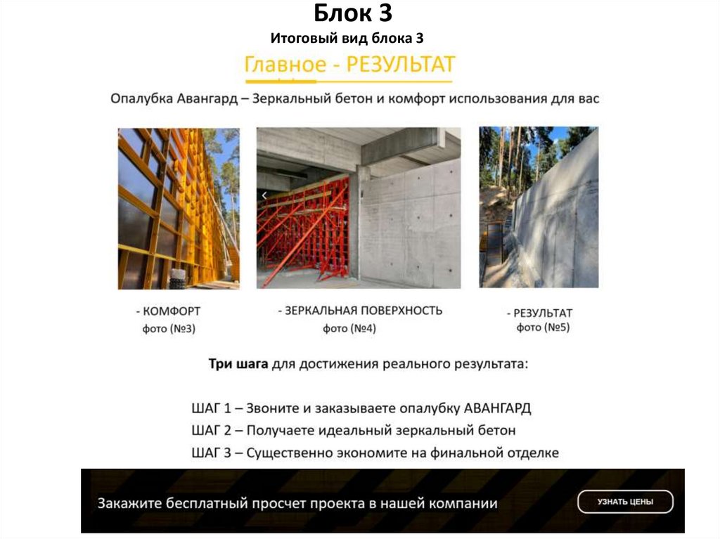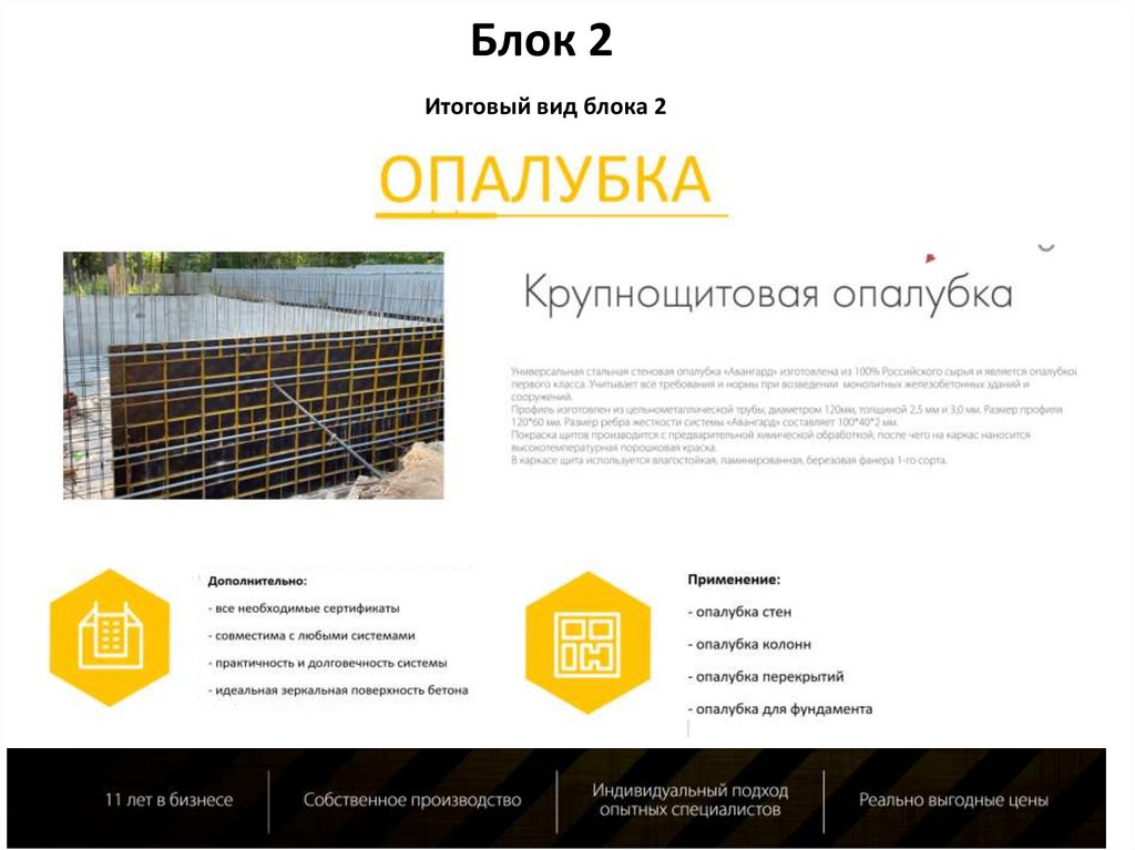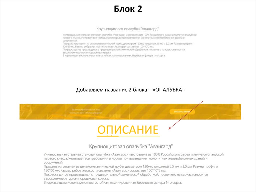 Блок 2Добавляем название 2 блока – «ОПАЛУБКА»