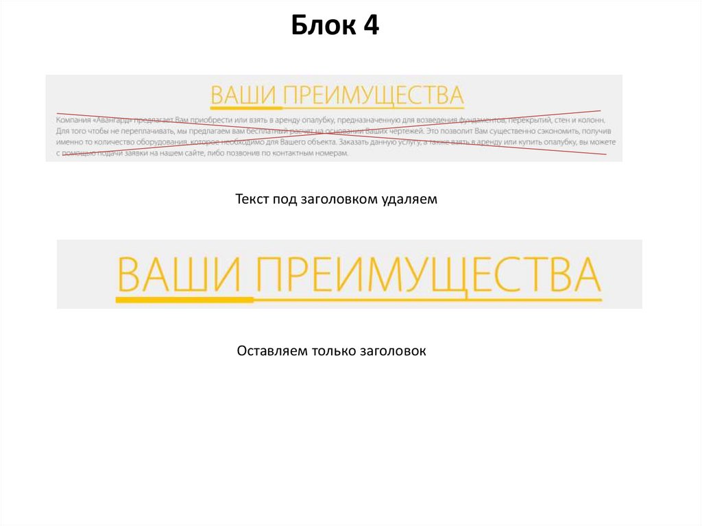 Блок 4Текст под заголовком удаляем