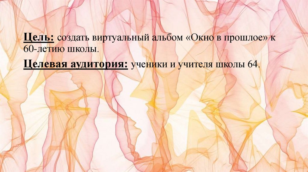 Цель: создать виртуальный альбом «Окно в прошлое» к60-летию школы.