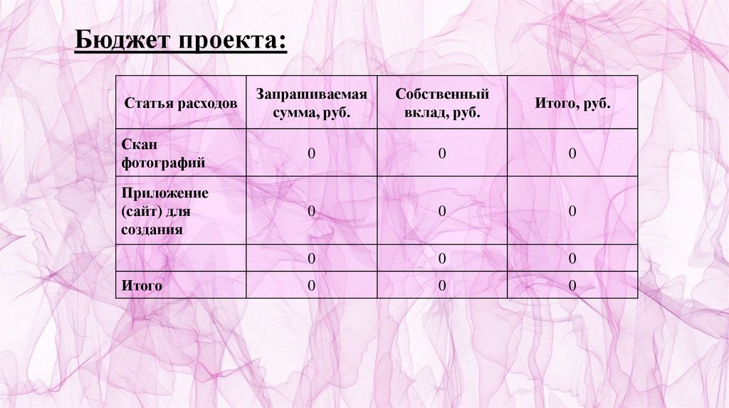Бюджет проекта:Запрашиваемая