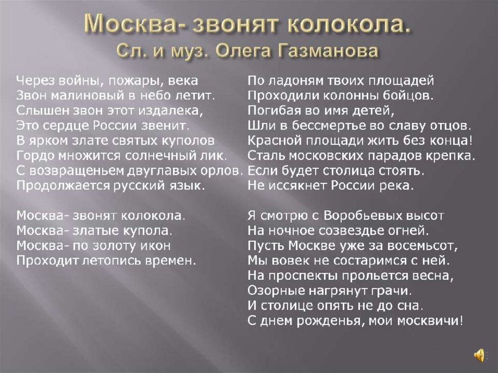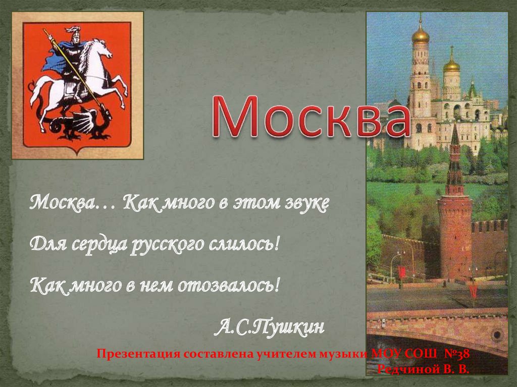 Москва… Как много в этом звукеДля сердца русского слилось!