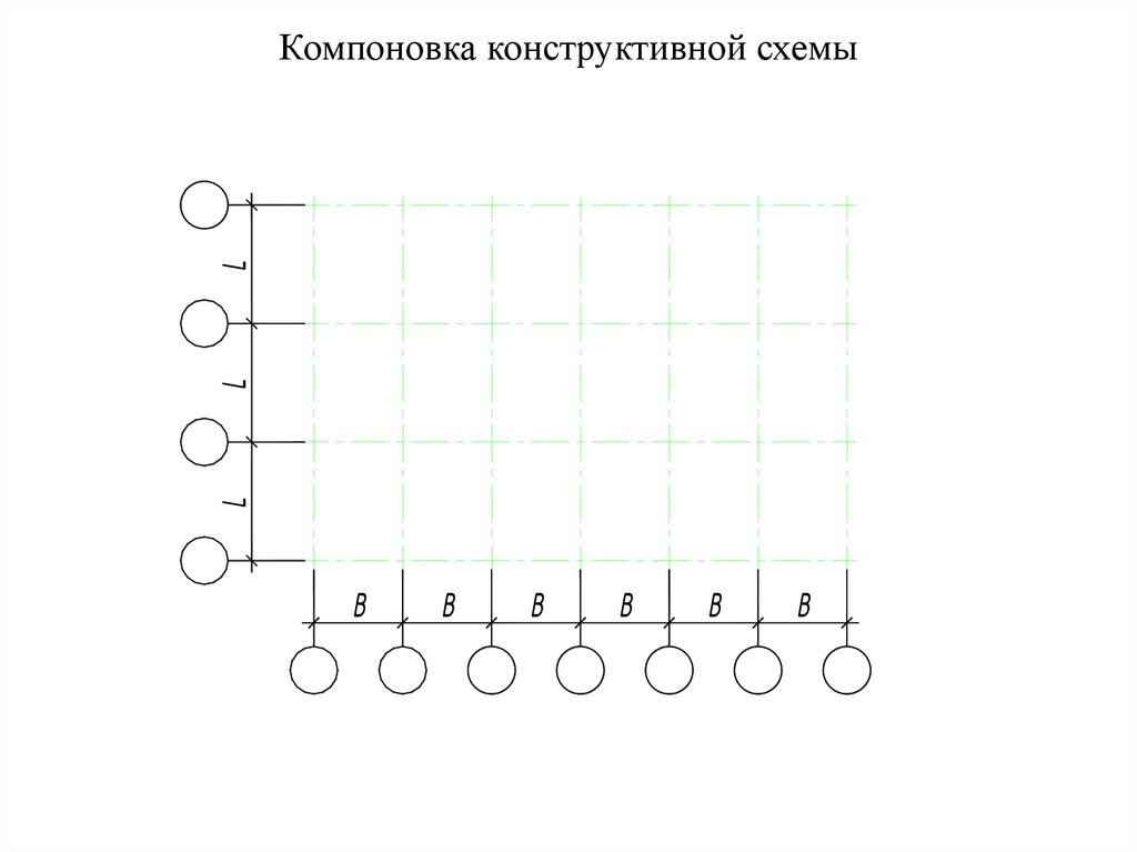 Компоновка конструктивной схемыРасстановка колонн, контур наружных стен.