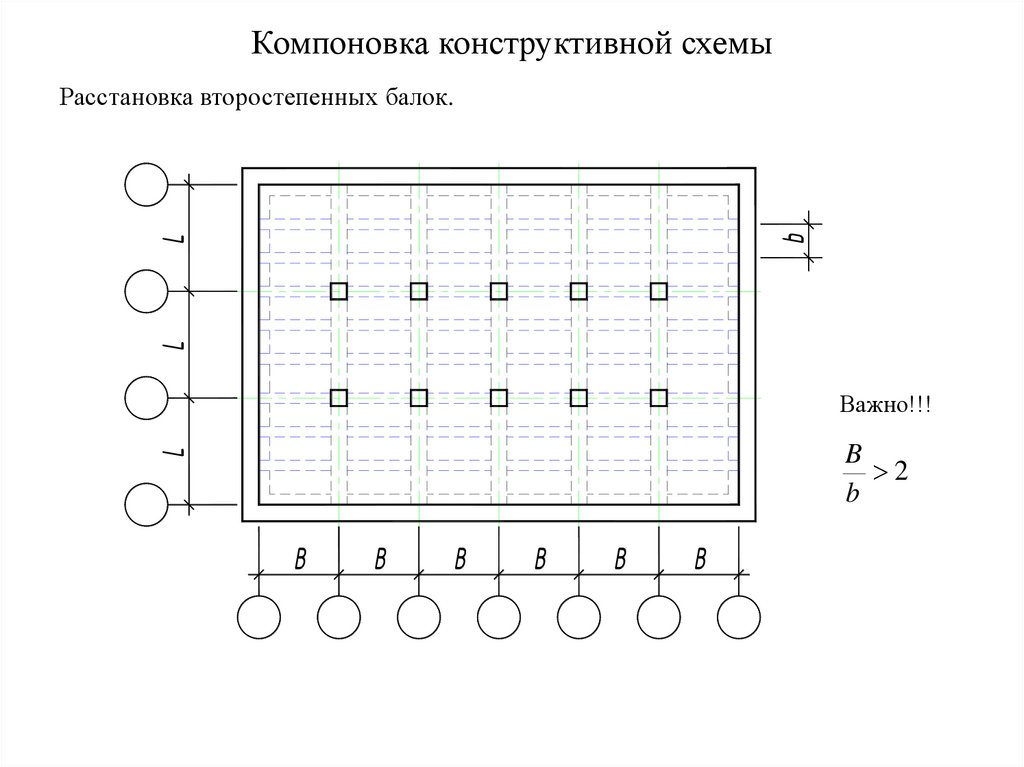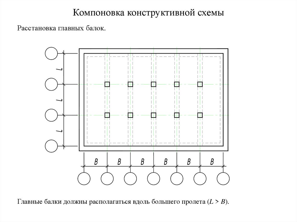 Главные балки должны располагаться вдоль большего пролета (L > B).
