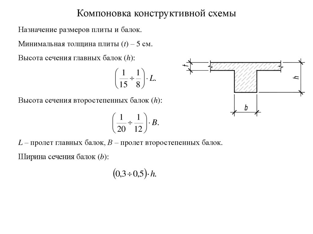 Компоновка конструктивной схемыНазначение размеров плиты и балок.