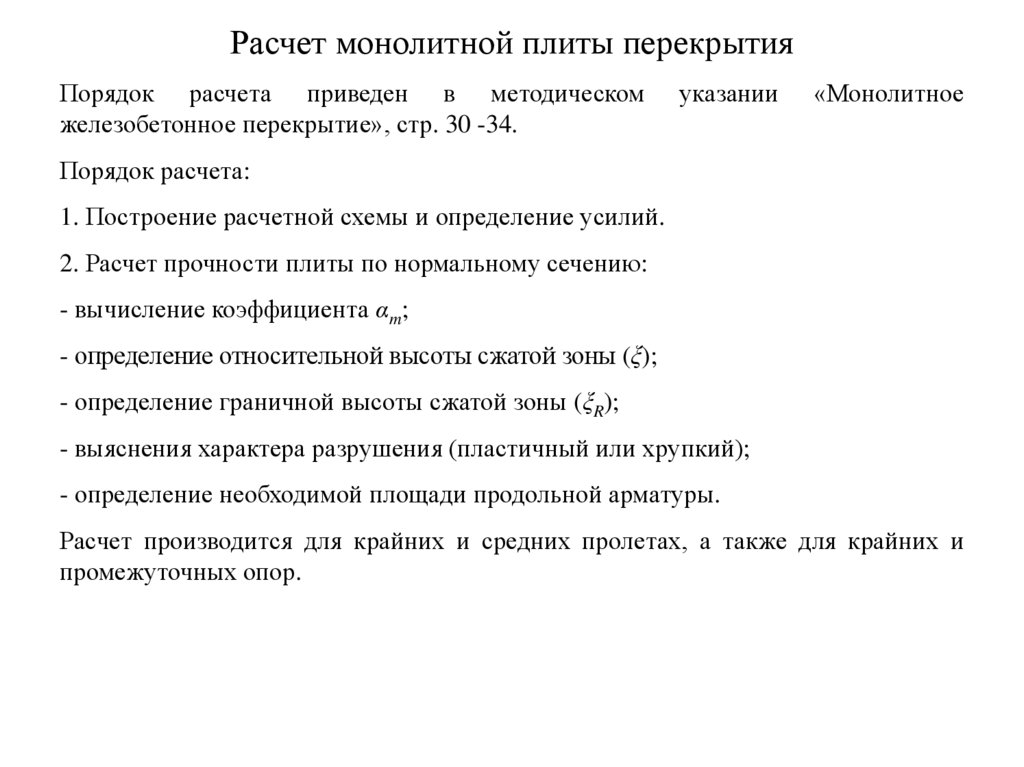 Расчет монолитной плиты перекрытияПорядок расчета приведен в методическом
