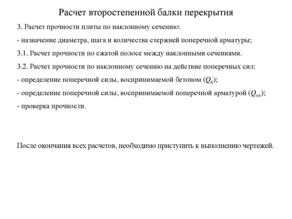 Расчет второстепенной балки перекрытия3. Расчет прочности плиты по наклонному сечению: