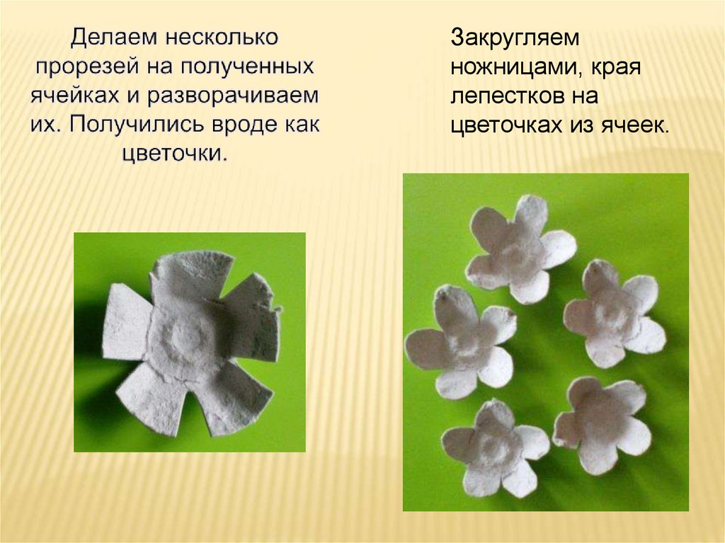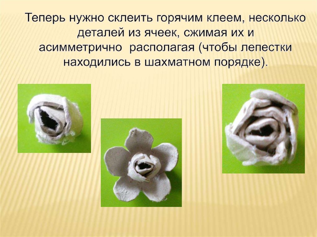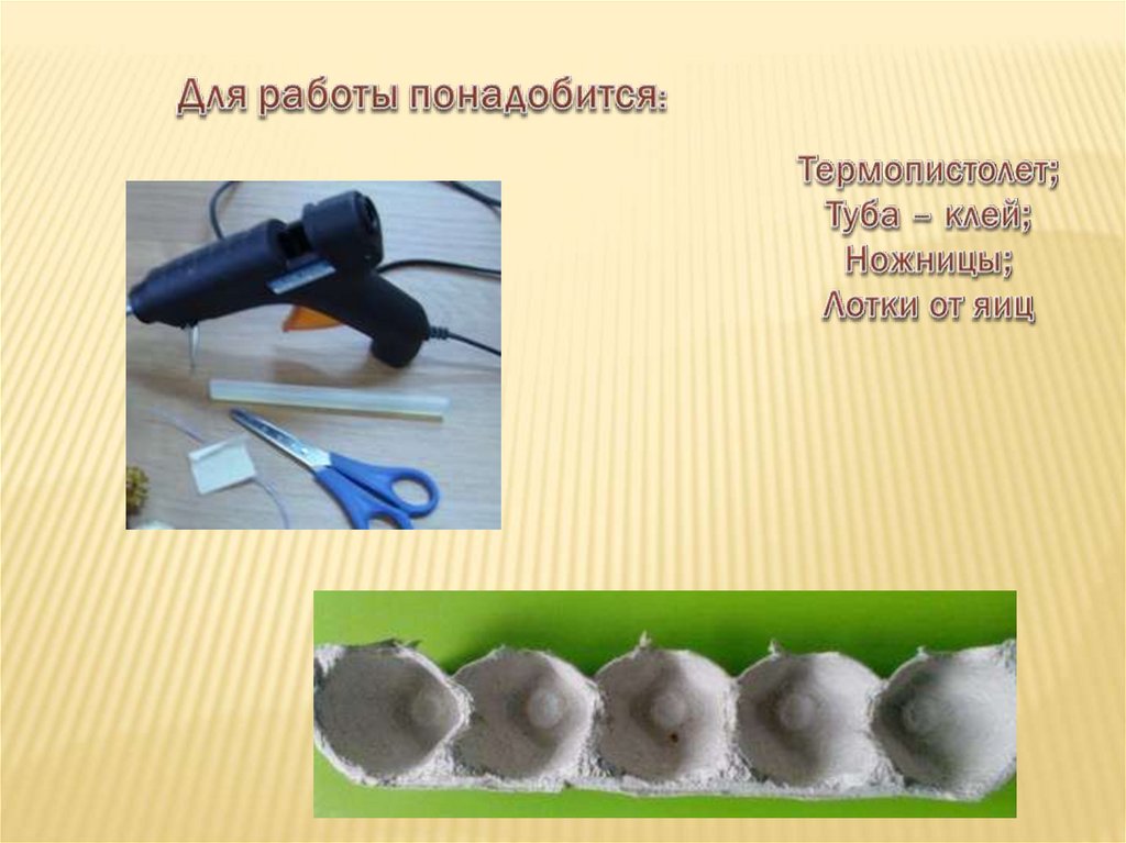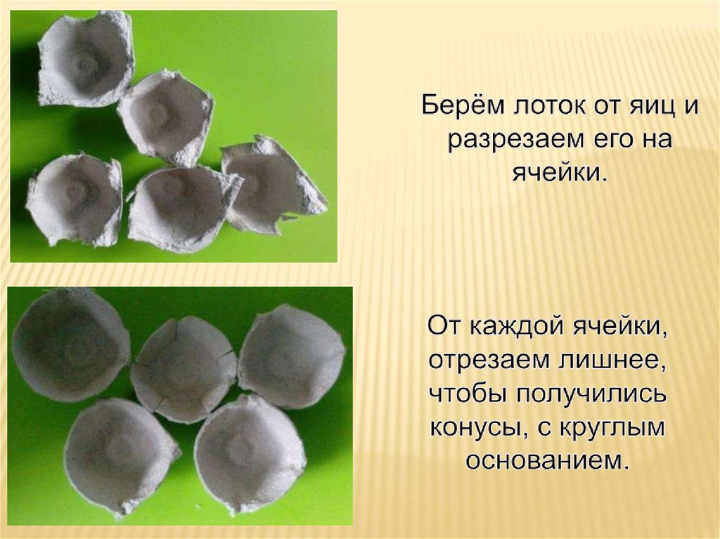 Заготовки из яичных лотков можно покрасить гуашью иликраской-аэрозолем, а потом воткнуть их в шар для