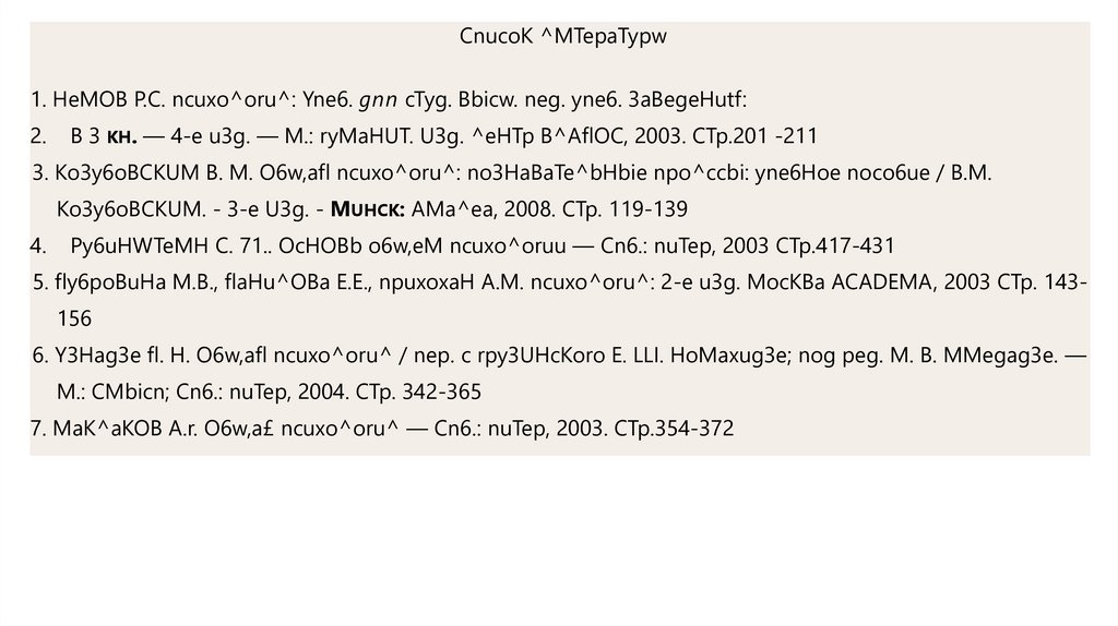 CnucoK ^MTepaTypw1. HeMOB P.C. ncuxo^oru^: Yne6. gnn cTyg. Bbicw. neg. yne6. 3aBegeHutf: