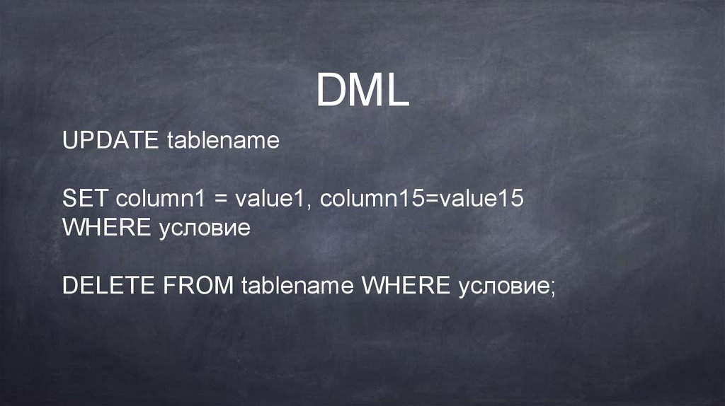 DELETE FROM tablename WHERE условие;