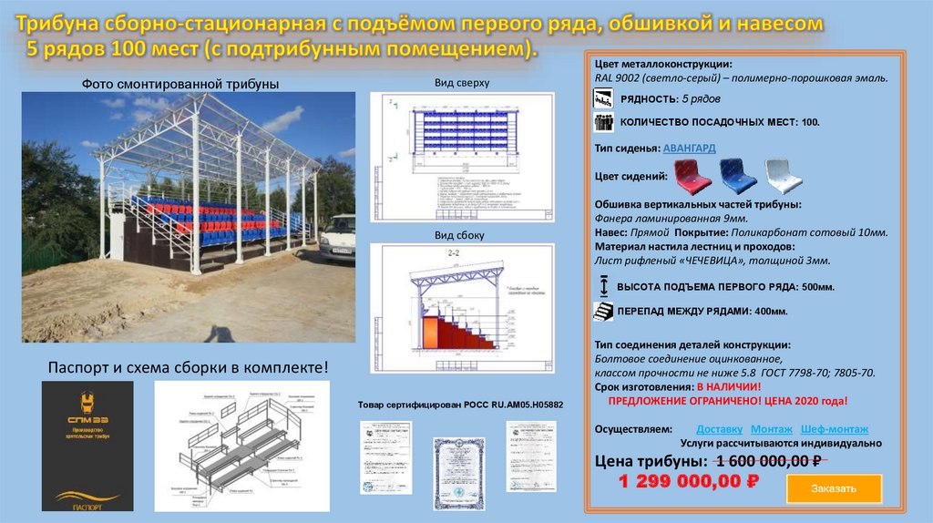 Трибуна сборно - стационарная с подъемом первого ряда. Товар на складе