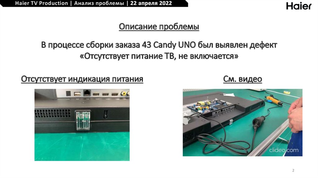 Haier TV Production | Анализ проблемы | 22 апреля 2022Анализ проблемы