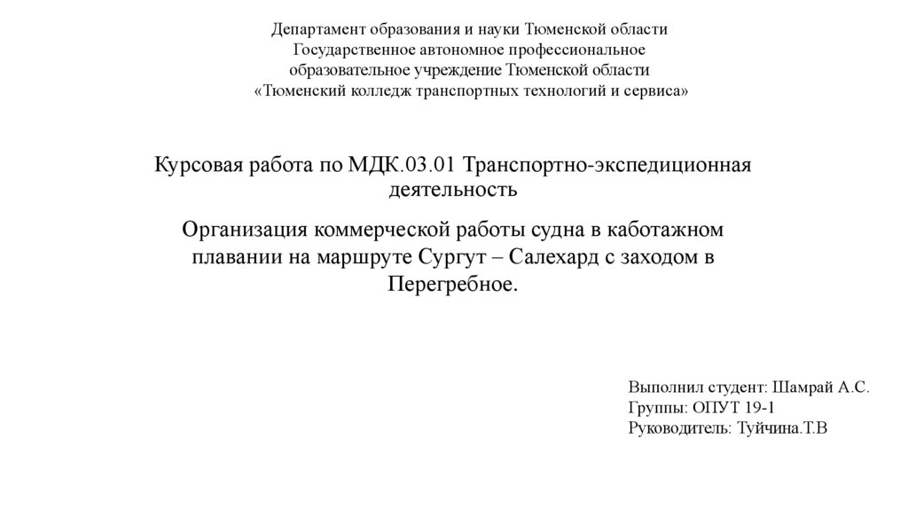 Организация коммерческой работы судна в каботажном плавании на маршруте Сургут – Салехард с заходом в Перегребное