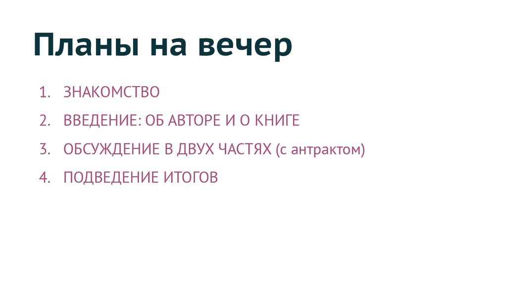 3. ОБСУЖДЕНИЕ В ДВУХ ЧАСТЯХ (с антрактом)