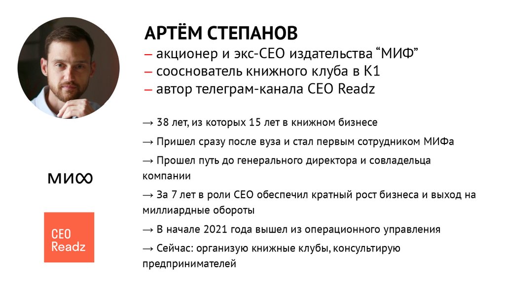 АРТЁМ СТЕПАНОВ– акционер и экс-CEO издательства “МИФ”