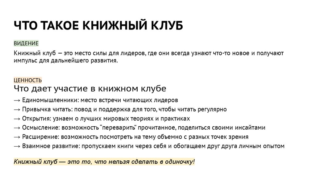 → Взаимное развитие: пропускаем книги через себя и обогащаем друг друга личным опытом