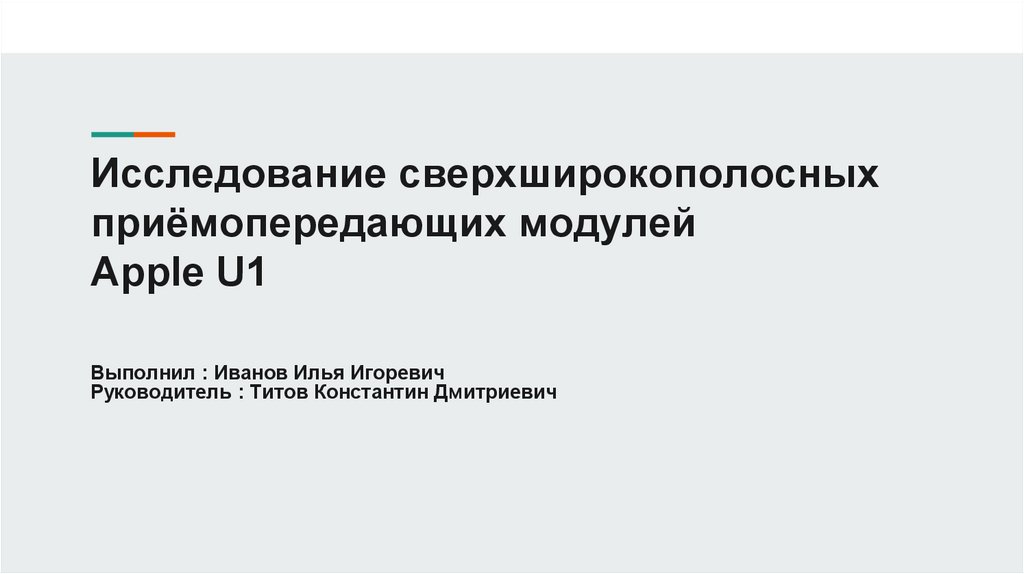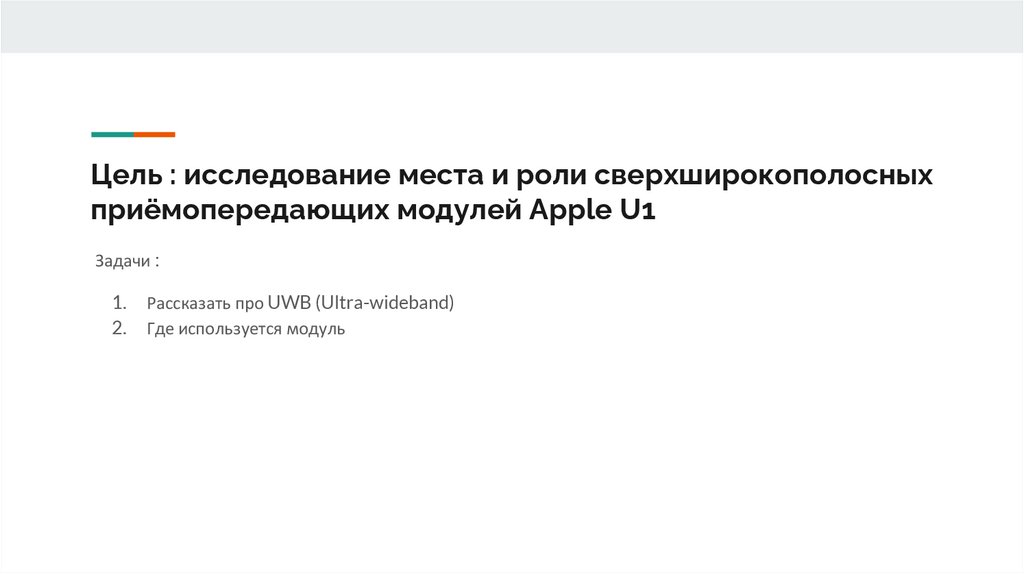 Цель : исследование места и роли сверхширокополосныхприёмопередающих модулей Apple U1