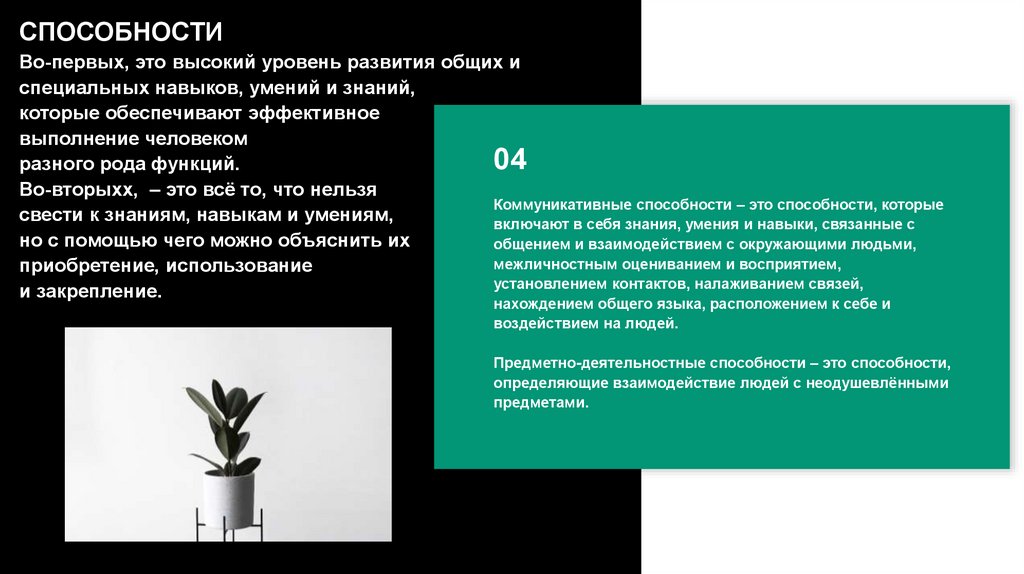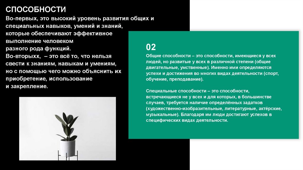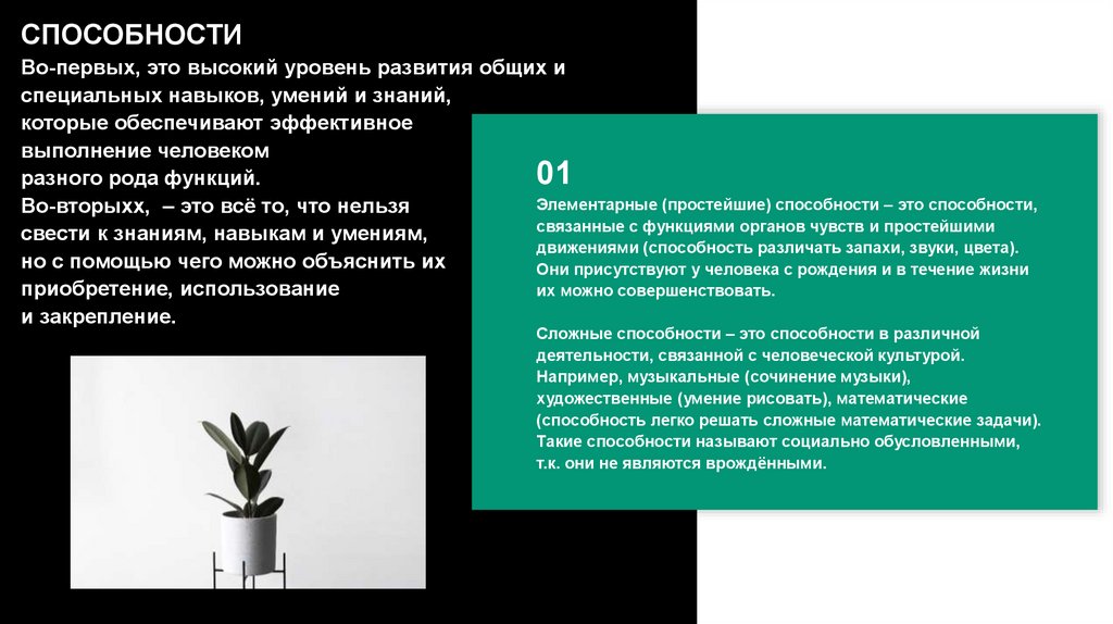 СПОСОБНОСТИВо-первых, это высокий уровень развития общих и