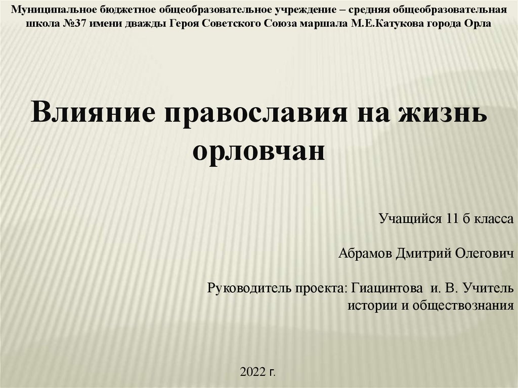 Муниципальное бюджетное общеобразовательное учреждение – средняя общеобразовательнаяшкола №37 имени дважды Героя Советского Союза маршала М.Е.Катукова города Орла
