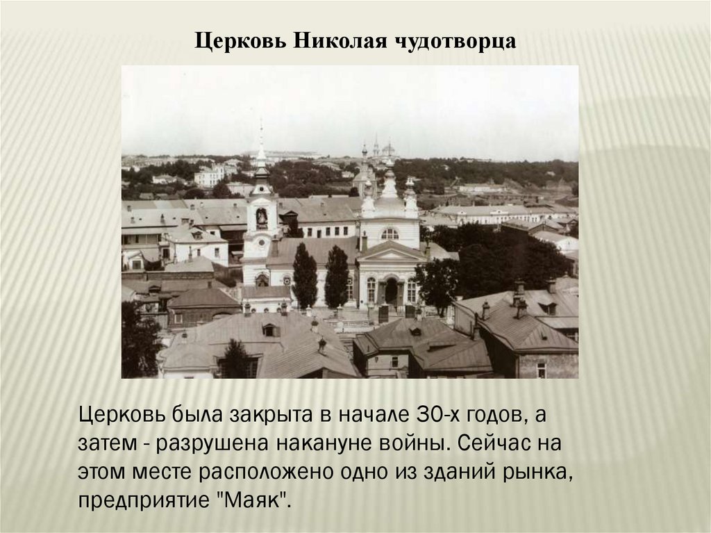 Церковь Николая чудотворцаЦерковь была закрыта в начале 30-х годов, а