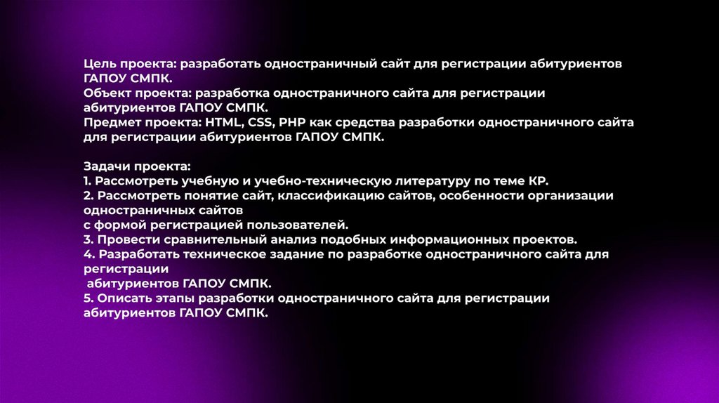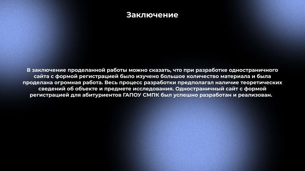 Разработка одностраничного сайта для регистрации абитуриентов ГАПОУ СМПК