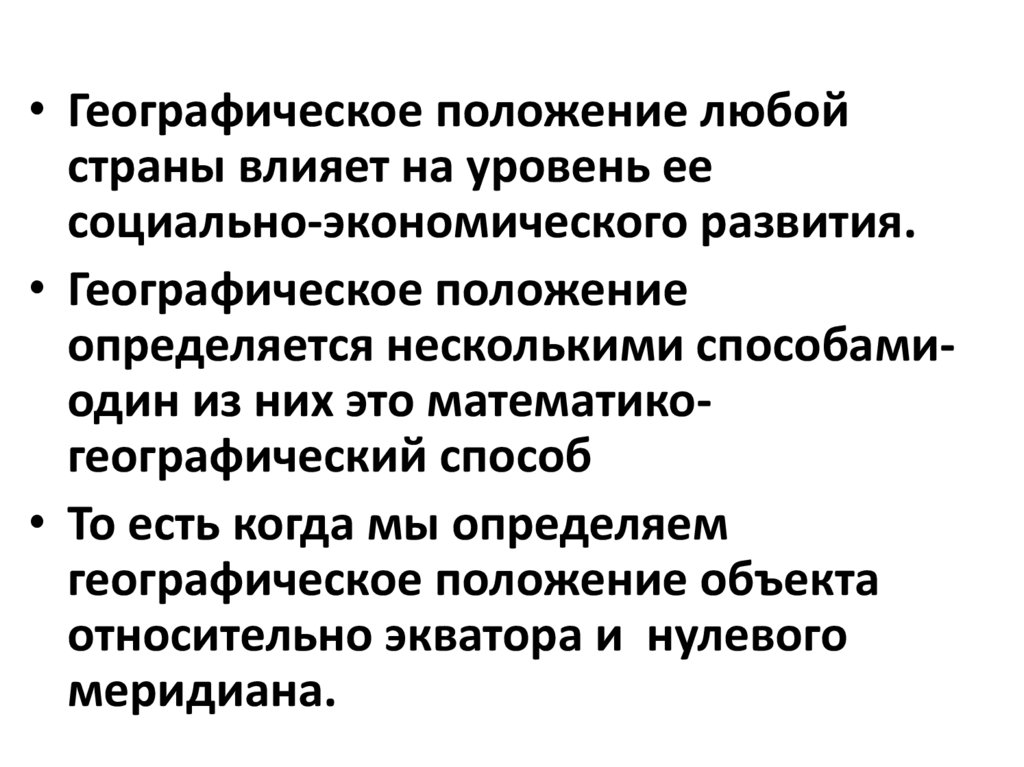 • Географическое положение любойстраны влияет на уровень ее