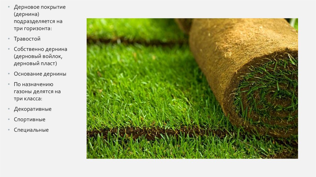 ДЕРНОВОЕ ПОКРЫТИЕ• Дерновое покрытие представляет собой верхний слой почвы, густо